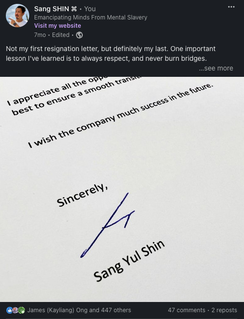 About six months ago, I decided to resign from a steady, well paying job from a reputable company. At the time, it was an exciting - if not nerve wracking - experience. I even posted about it on LinkedIn and was really looking forward to the journey ahead: creating FoFty.